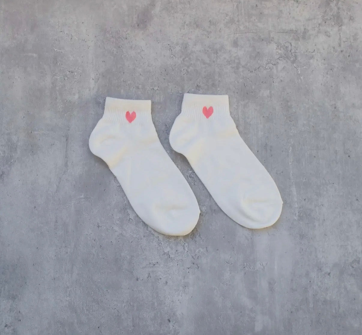 Slip into fun with these Mini Heart Ankle Socks! Featuring adorable hearts on each side, these white ankle socks add a cute, playful touch to any outfit. Perfect for everyday wear, they bring a little love and whimsy to your feet while keeping you comfortable all day long.