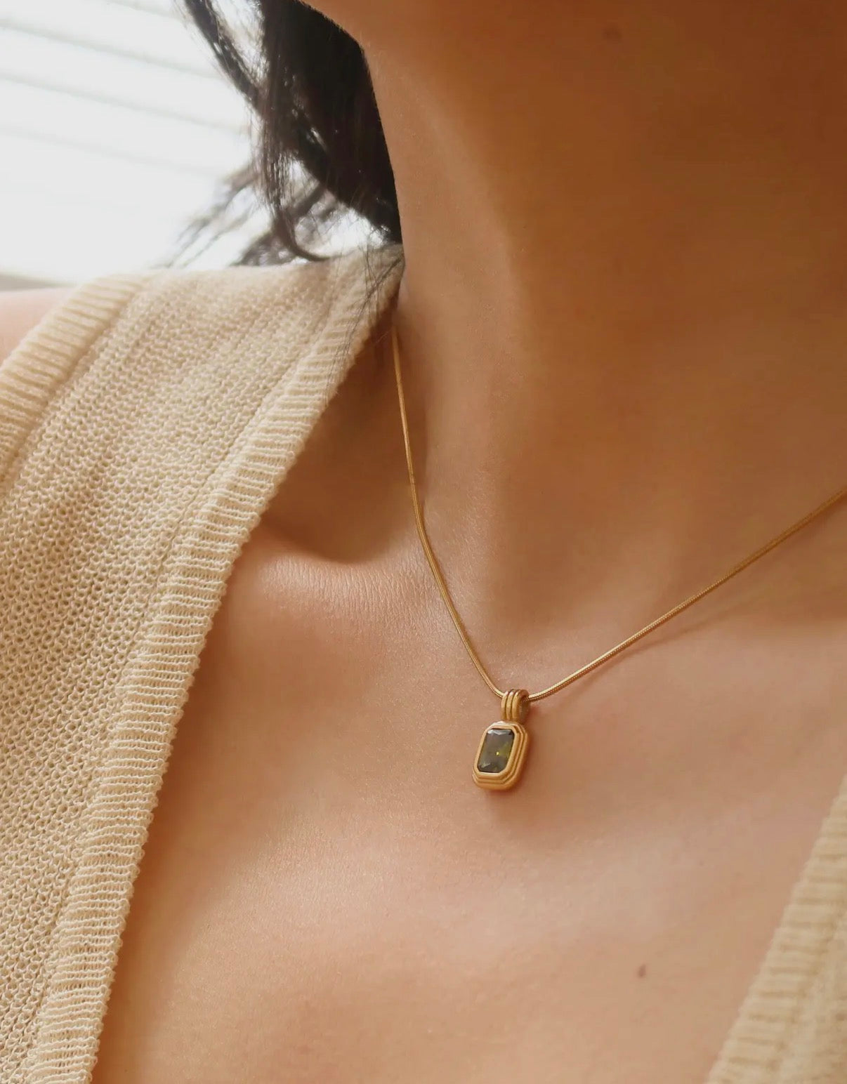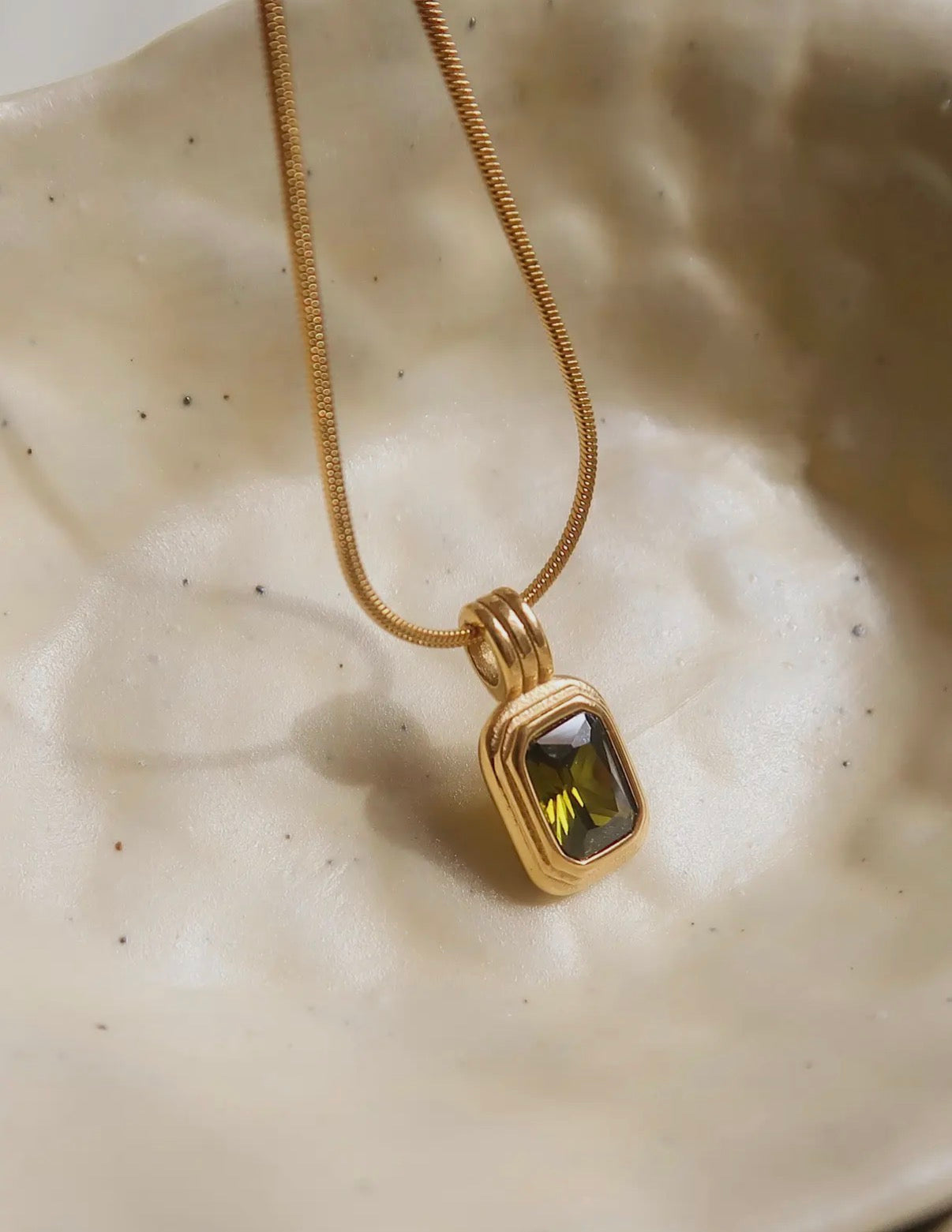 Elevate your everyday look with the Maeve Green Stone Necklace—a charming blend of natural beauty and timeless elegance. This delicate pendant features a vibrant green square stone that catches the light beautifully, suspended from a lustrous gold chain that adds a touch of sophistication. Perfect for layering or wearing solo, it's the kind of piece that makes you smile every time you catch your reflection. A little green never hurt anybody!