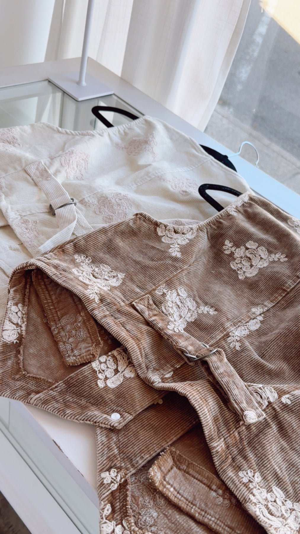 Add a touch of whimsy to your wardrobe with this playful embroidered corduroy vest. Its soft, washed look gives it a cozy, lived-in feel, while the intricate embroidery adds a unique pop of personality. Perfect for layering over your favorite tees or dresses, this vest brings both comfort and charm to any outfit.
