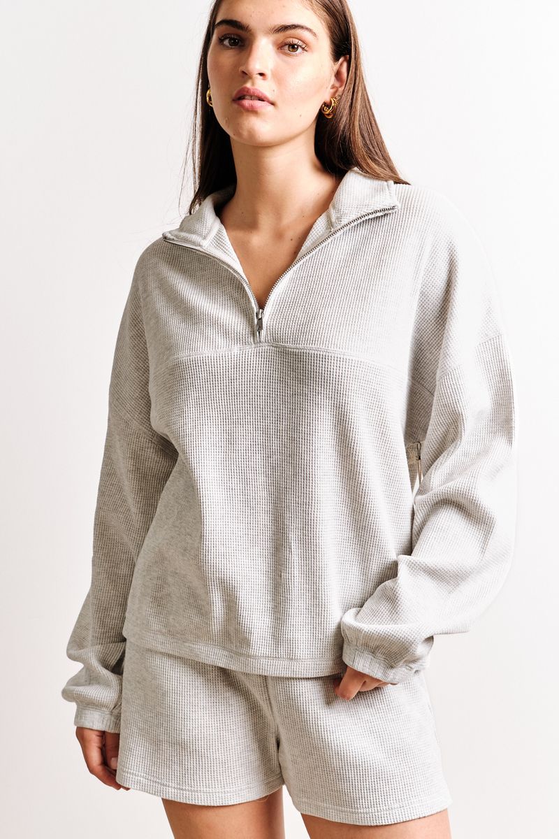 The Bailey Waffle Zip brings effortless style to your everyday rotation. Crafted from soft waffle fabric in a versatile heather gray, this quarter-zip pullover layers beautifully and moves with you. Perfect for casual days or layering under jackets, it's a wardrobe essential that works as hard as you do.