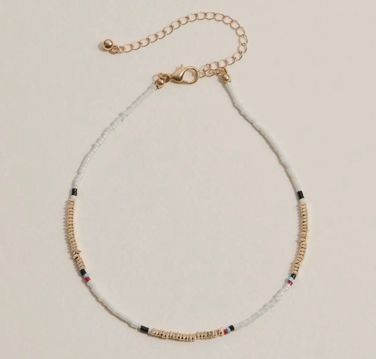 Add a pop of color to your ankle game with these vibrant multicolour beaded anklets. Each strand features carefully selected beads in a rainbow of hues, accented with shimmering gold details that catch the light beautifully. Perfect for layering or wearing solo, these playful accessories bring instant personality to any outfit—from casual beach vibes to festival-ready looks. Lightweight and comfortable for all-day wear, they're the fun finishing touch your summer style has been waiting for.
