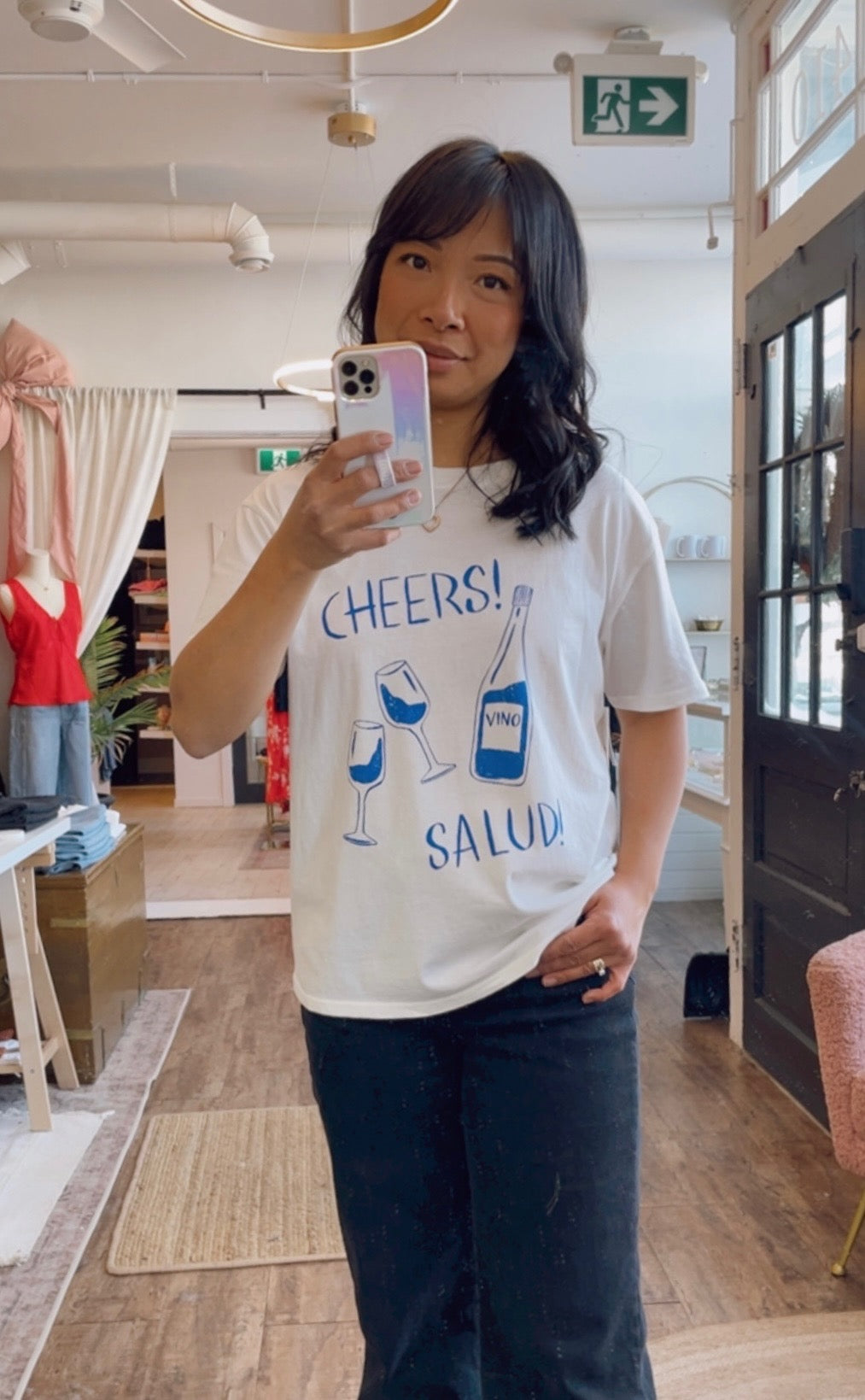 Made from soft cotton jersey, this relaxed tee features a playful salud graphic that captures the essence of carefree weekends. With a lightweight feel and easy fit, it’s a must-have for sunny days.