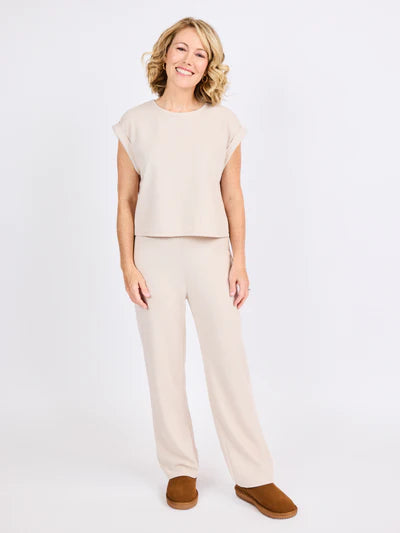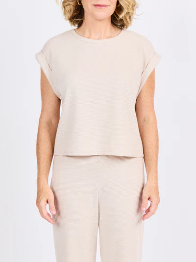 Casual doesn’t have to be boring. This laid-back waffle knit tee is designed with cuffed sleeves and a slightly cropped cut, giving your basics a refresh. Pair it with flowy linen pants, your go-to denim, or matching knit bottoms for an effortlessly cozy vibe.