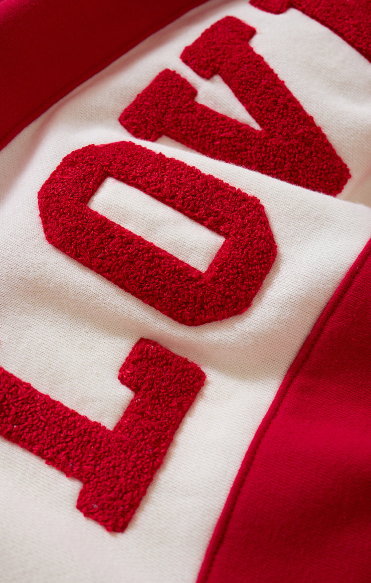 This oversized crewneck sweatshirt is made from soft cotton-blend fleece and finished with boucle “Love” collegiate lettering on the front. With its roomy fit and plush interior, it’s the kind of cozy you’ll never want to take off.